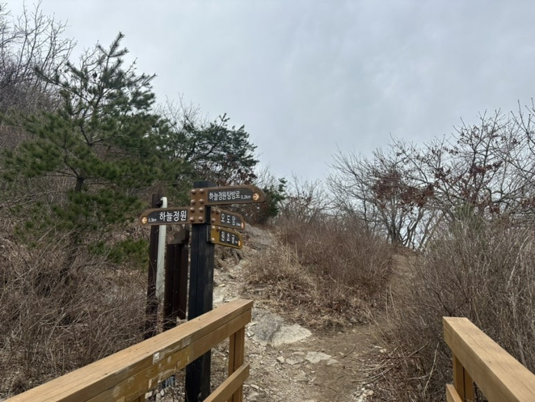 계단 끝에 있는 이정표(하늘정원으로 가셔요)
