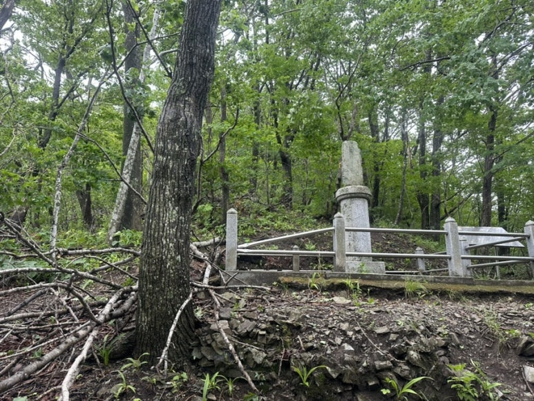 오잉? 비석(?) 뒤로 등산로 있어요!