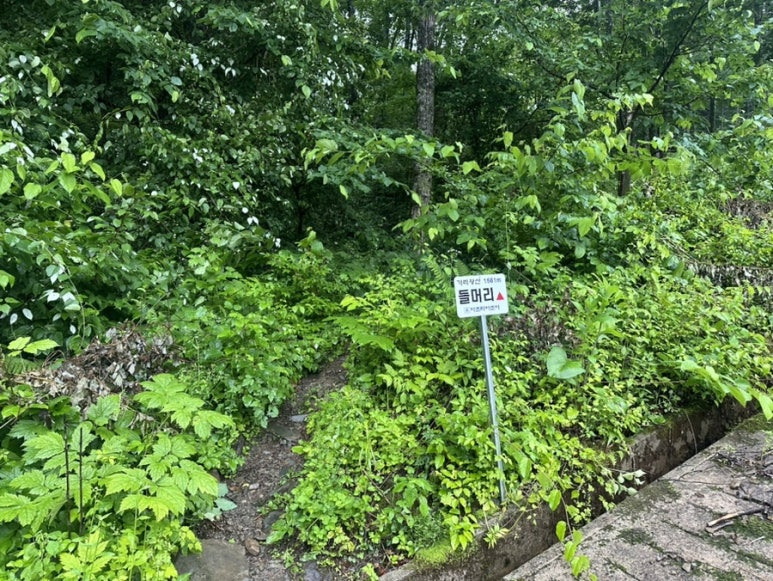 등산로는 저기 하얀색 표지판 보이시죠!(저는 임도로 올라갔다 다시 내려와서 등산로 입구 찾았네요)