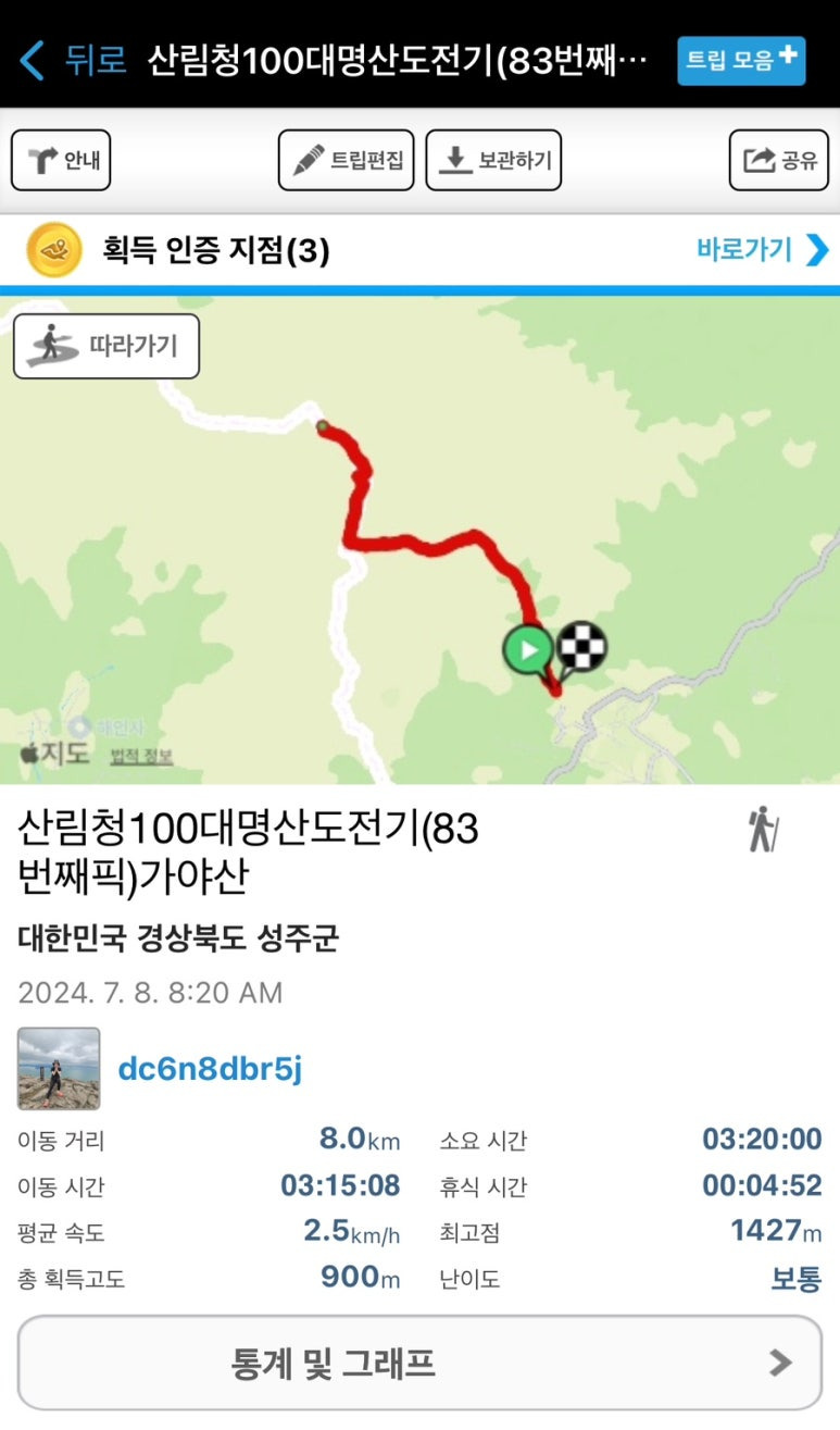 • 해인사 코스는 등산 입구가 너무 멀어서 1일 2산 하기가 좀 힘들더라구요.