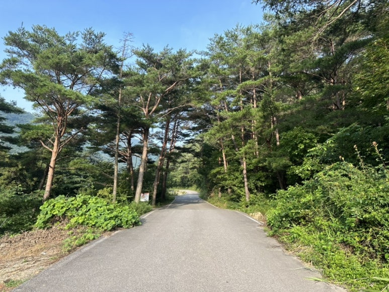 아스팔트도로 약 2km 걸어요 ㅠㅠ